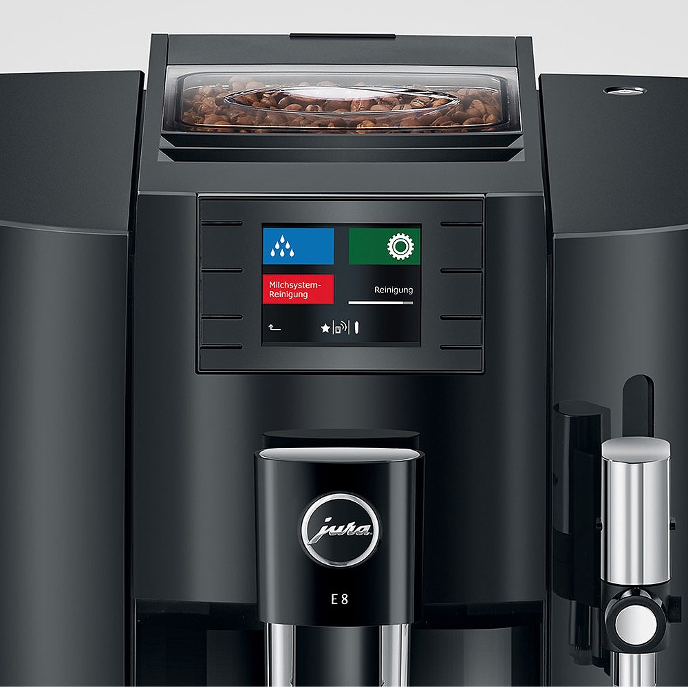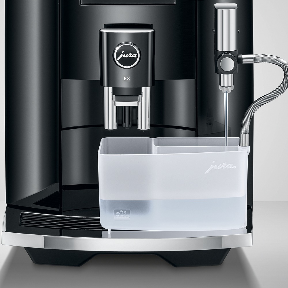 Pro pohodlnější ovládání slouží funkce Coffee Eye, která automaticky detekuje umístění šálku a přizpůsobí výběr na displeji dostupným specialitám. Výhodou kávovaru J8 je také snadné čištění mléčného systému, které je možné provést jedním dotykem tlačítka.