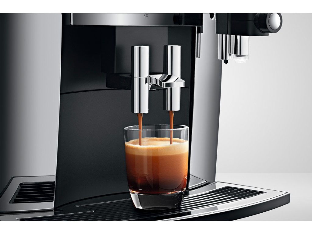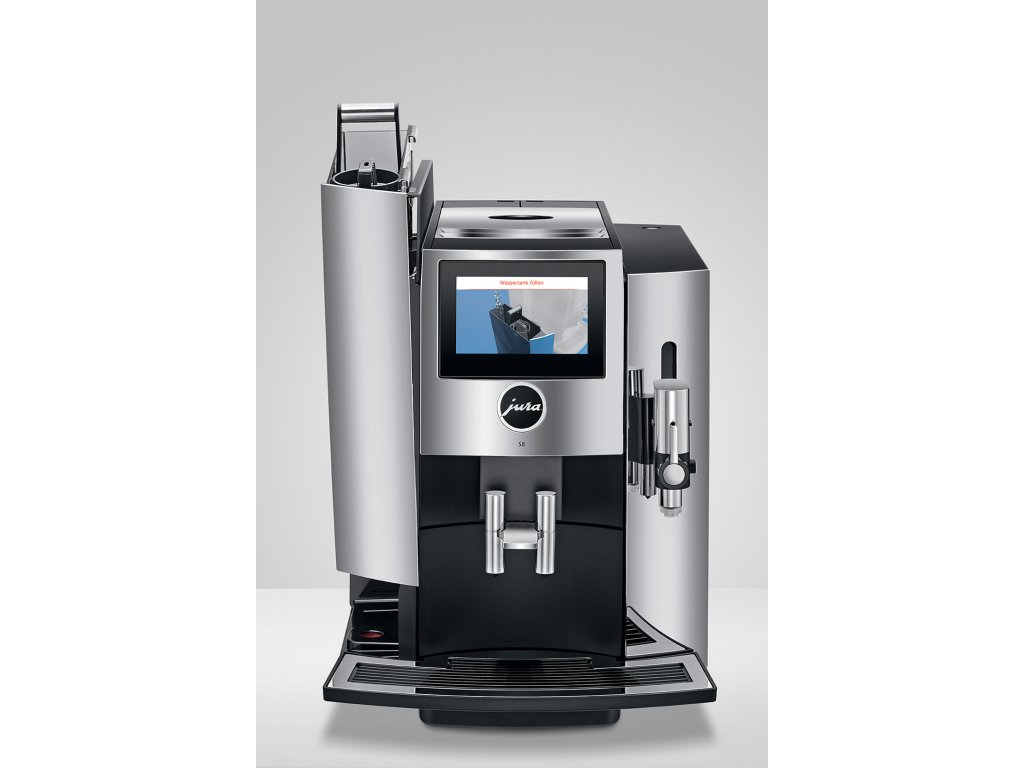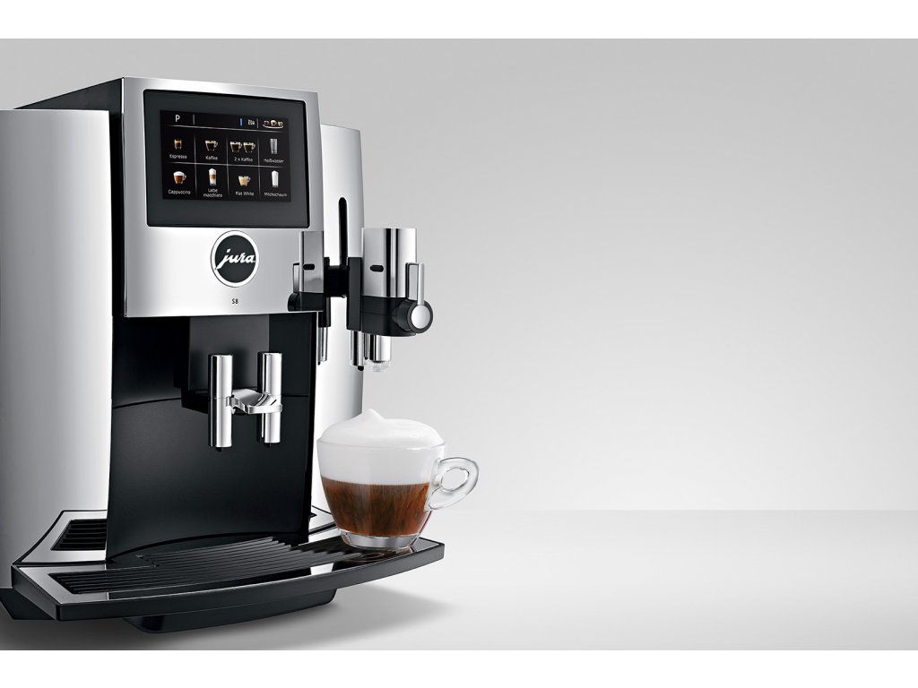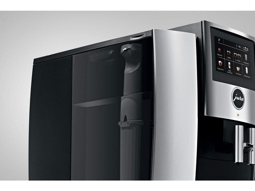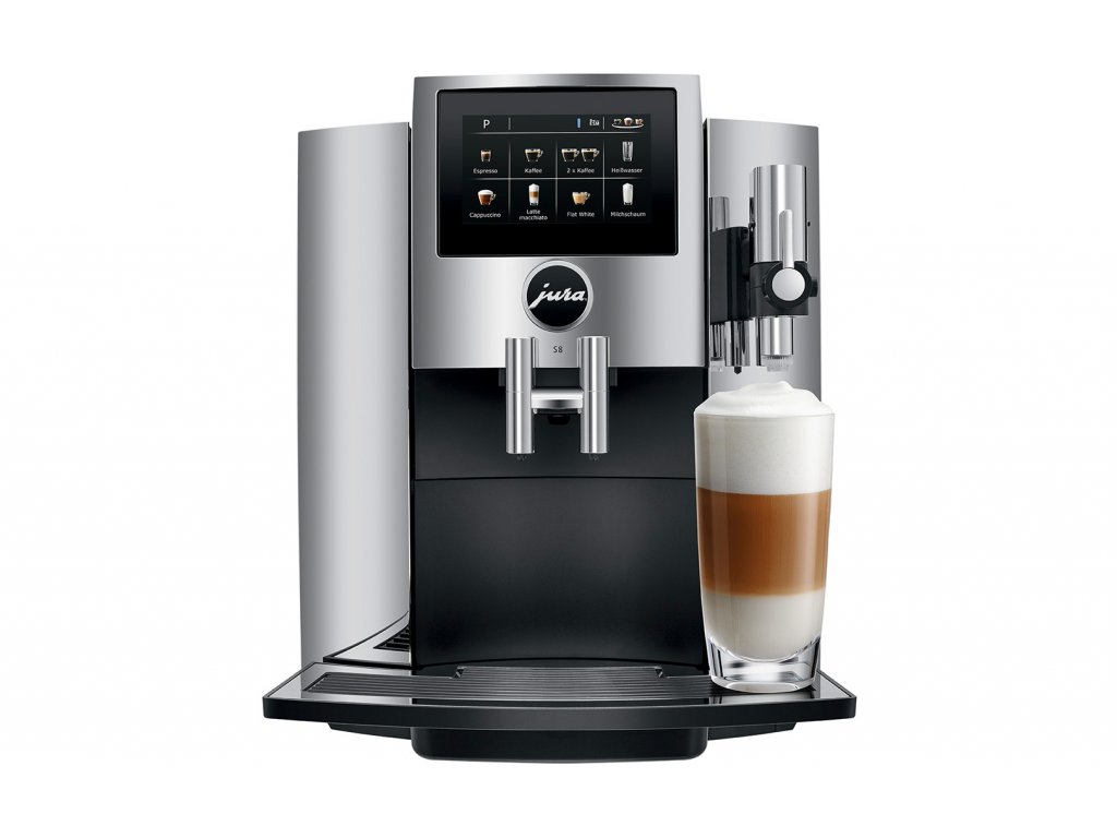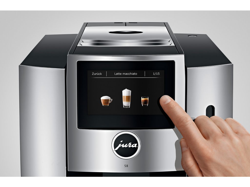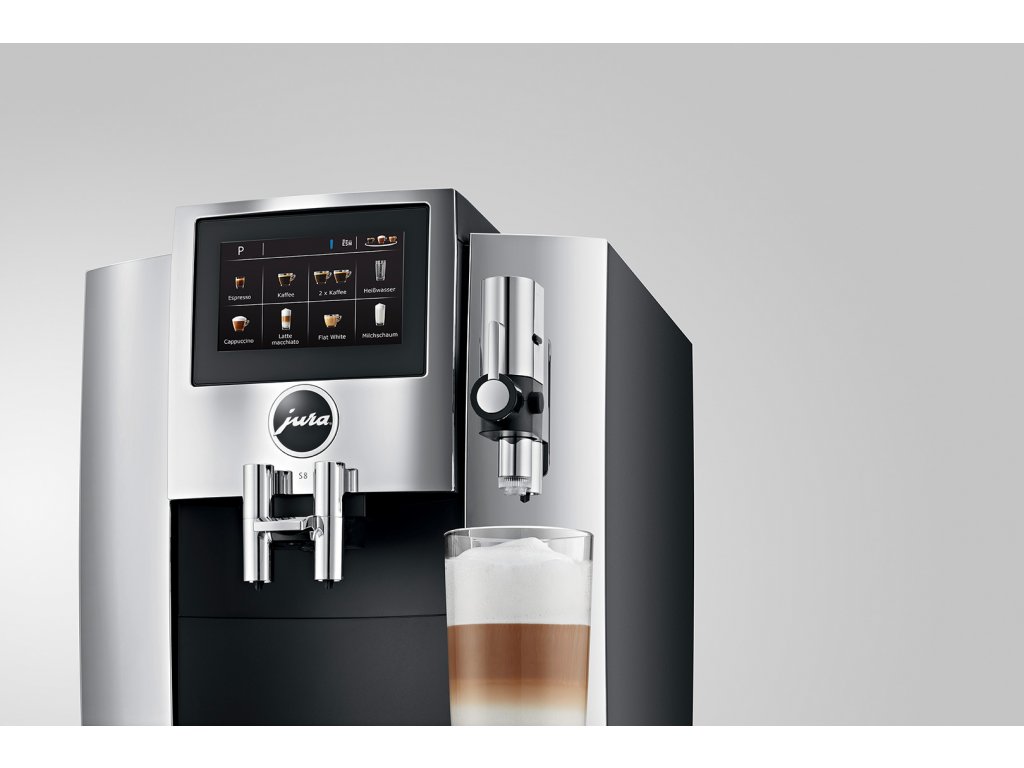 Model S8 od společnosti Jura představuje kombinaci nejlepších technologií, kvality, služeb a stylu. Díky inovativním novým technologiím připraví bohatou škálu kávových nápojů ve vynikající kvalitě. Moderní a komfortní obsluha s brilantním barevným 4´3 dotykovým displejem. Perfektní a všestranný design s vynikajícími detaily umocňuje okamžiky radosti. Možnost ovládání pomocí smartphonu nebo tabletu. Pro snadnou hygienu jsou integrovány programy pro proplach a čištění kávových i mléčných cest.