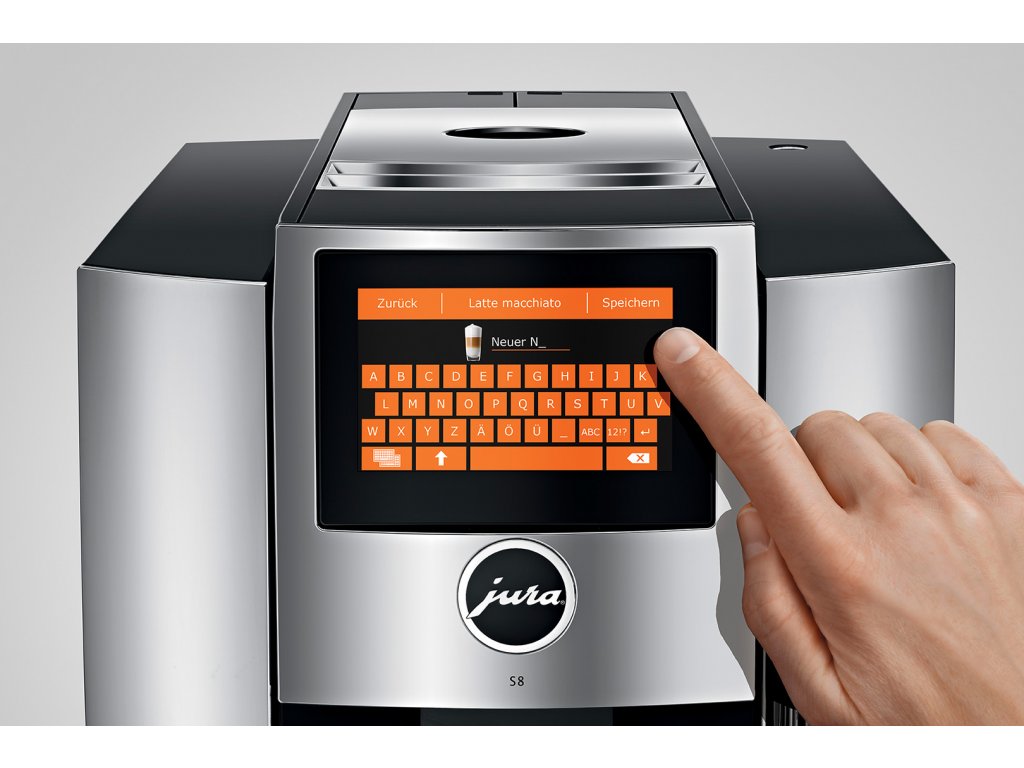 Ovládání Jura S8 Chrome je naprosto intuitivní. S 4,3″ barevným displejem s vysokým rozlišením, který reaguje na lehký dotek špičkou prstu, je příprava kávy hračkou. Tento inovativní koncept ovládání je jednoduchý a srozumitelný pro každého. Díky grafikám a animacím jsou všechny kroky přípravy kávy zobrazeny přehledně a srozumitelně. Uživatel si může naprogramovat své individuální preference v několika málo krocích. Funkce přejmenování, přesouvání, kopírování a zdvojnásobení jsou samozřejmostí. Navíc, ovládání kávovaru lze pohodlně řídit přes mobilní aplikaci JURA Coffee, která se pravidelně aktualizuje a je zcela bezplatná.